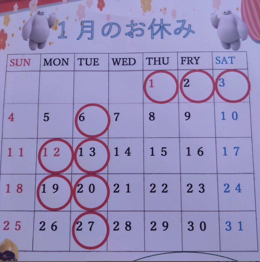 1月のお休みのお知らせです。お着付などのお仕度のお問い合わせもお気軽にお問い合わせください。